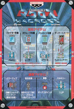 マクロスのキャラを使ったボンバータイプのオーソドックスな縦シュー。